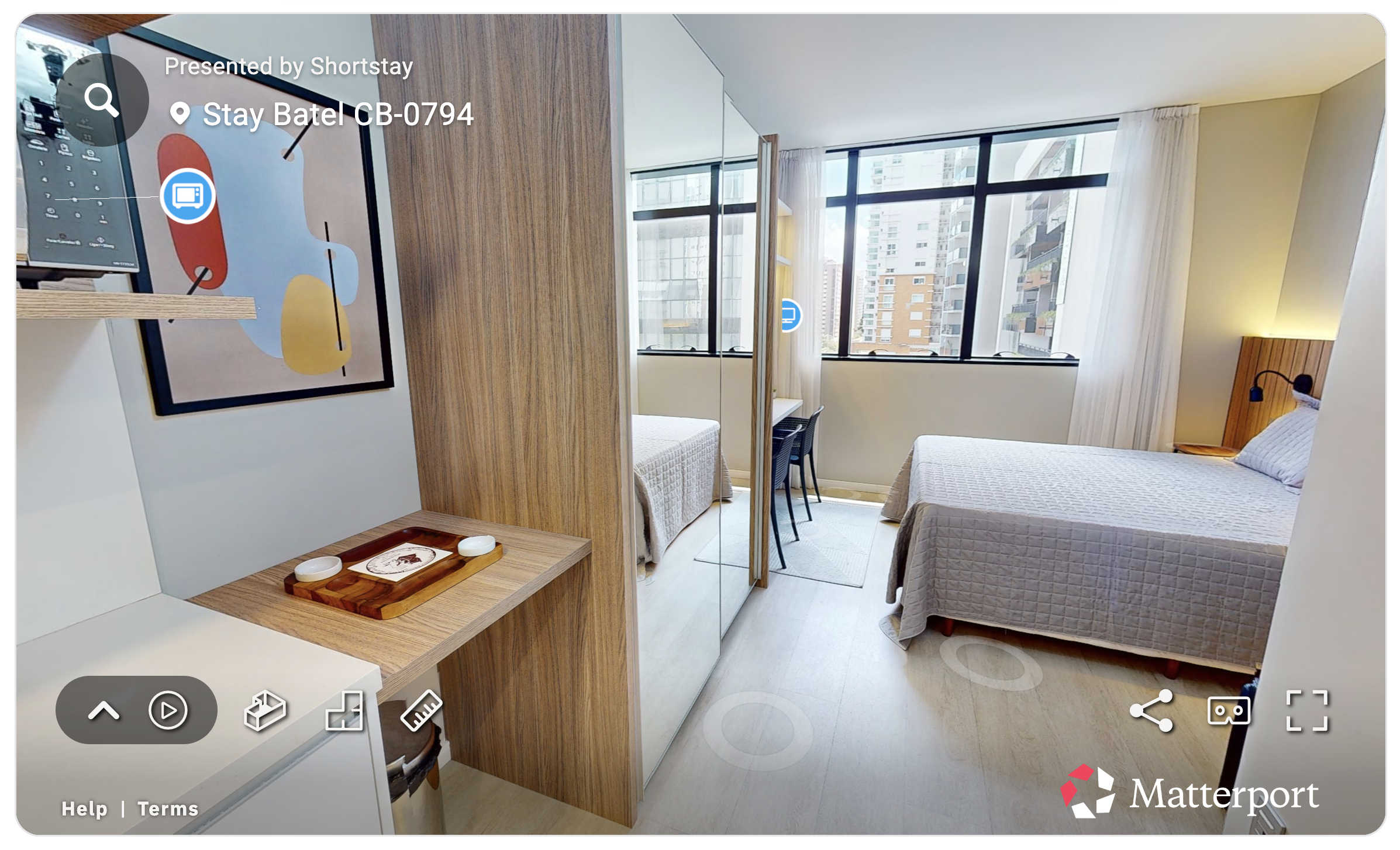 Paseá virtualmente por los ambientes, mirá la vista desde las ventanas, los electrodomésticos, las luces y todos los espacios de tu futuro departamento.